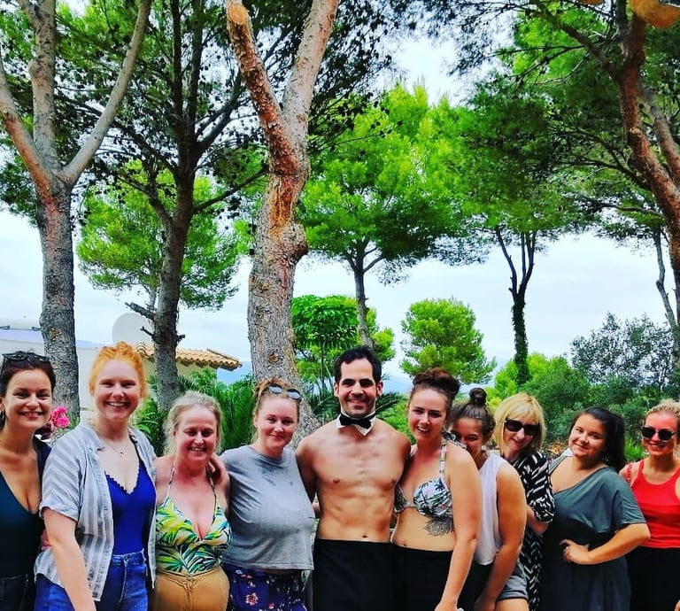 No hen party is truly complete without a handsome, cheeky butler in the buff to kick things off! Hosting your celebration at a holiday villa is the ideal setting for this playful service. Our butlers are great at breaking the ice with party games, mingling with guests, and even jumping into the pool party fun—creating unforgettable memories and photo moments you'll cherish.
